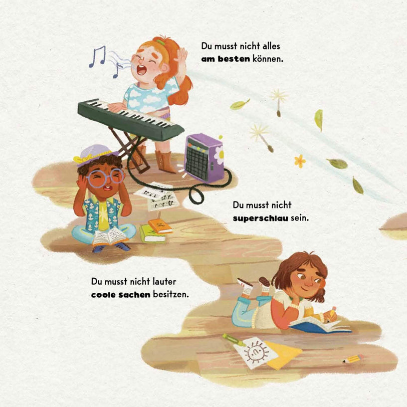 Wir alle fühlen uns manchmal nicht gut genug, nicht klug genug oder nicht beliebt genug. Vor allem dann, wenn wir merken, dass jemand anders etwas viel besser kann als wir. „Ich bin genau richtig” zeigt Kindern, dass sie wertvoll und liebenswert sind und erinnert uns mit liebevollen Illustrationen und einfühlsamen Worten daran, dass wir nicht perfekt sein müssen, um genau richtig zu sein. Ein Buch, das gerade in einer Gesellschaft voller „Höher, Schneller, Weiter” wichtige Gegenentwürfe bietet.